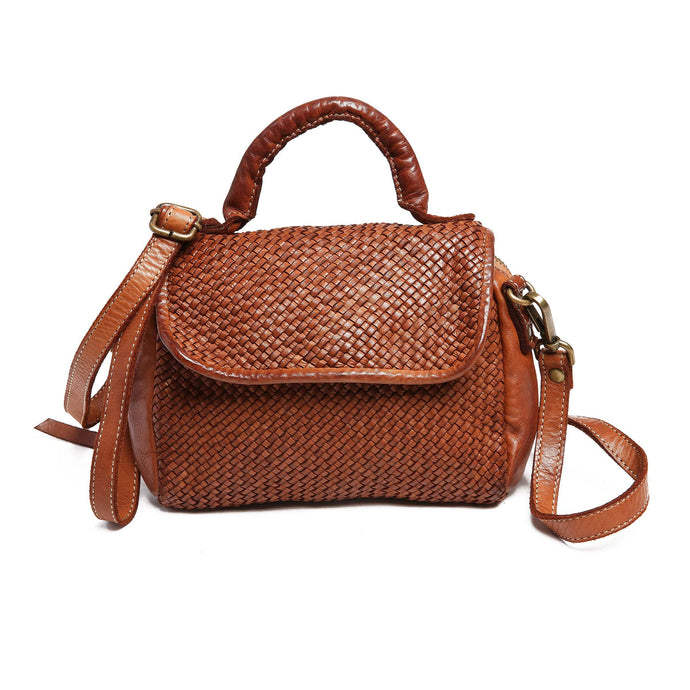 Bolsa Nova Handbags - Lily Woven Leather Minibag: Cognac
