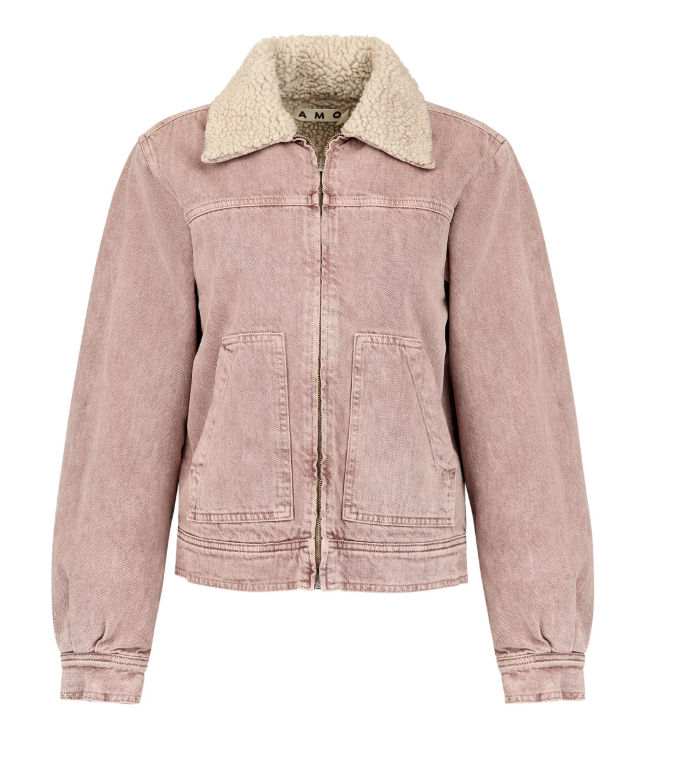 Sherpa collar coat with front patch pockets for a utility-inspired feel, finished in a natural dye for a lived-in look