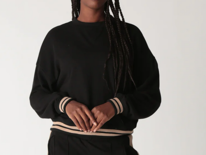 Jumper1234- Stripe Distressed Crew- Black Stone