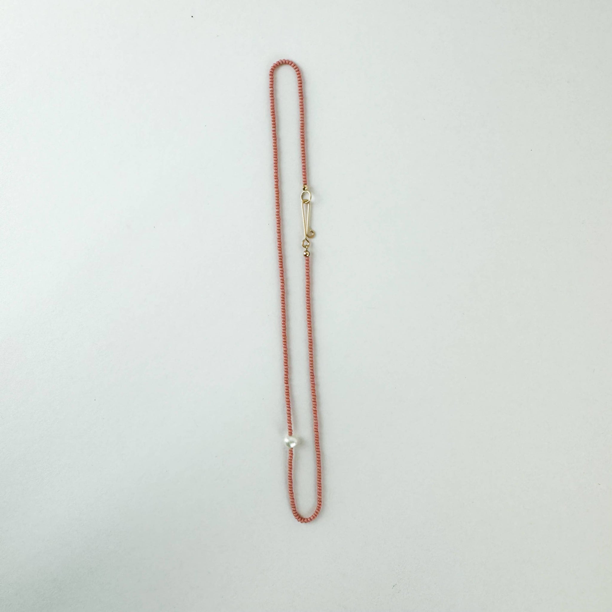 Hand strung with either Sterling Silver or 14k Gold-Fill metal. Complete with hand forged hook and eye.