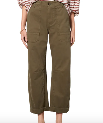A modernized utility pant crafted from pure cotton twill with cargo-inspired patch pockets! Featuring a relaxed, slightly bowed, straight leg, a high rise waist, and a cropped length for an elevated everyday style.